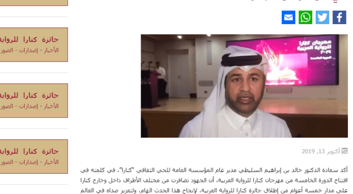 ونوّه السليطي، إلى أن إطلاق الدورة الخامسة، من الجائزة في “كتارا”، حاضنة المبدعين والأدباء العرب من المحيط الى الخليج، جاء وفق الرؤية التي واكبت إطلاق هذه الجائزة عام 2014، والتي تهدف إلى جعل المؤسسة العامة للحي الثقافي “كتارا” محطة جديدة في تاريخ الرواية العربية تنطلق بها نحو العالمية، وحافزاً دائماً لتعزيز الإبداع الروائي العربي.