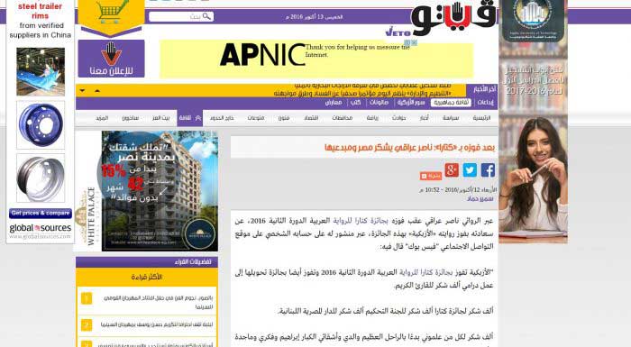 ألف شكر لجائزة كتارا ألف شكر للجنة التحكيم ألف شكر للدار المصرية اللبنانية.