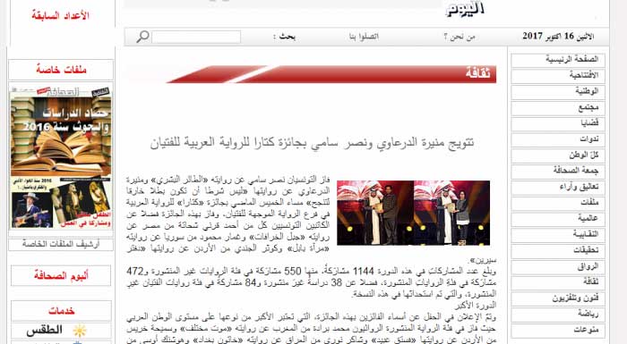 تتويج منيرة الدرعاوي ونصر سامي بجائزة كتارا للرواية العربية للفتيان