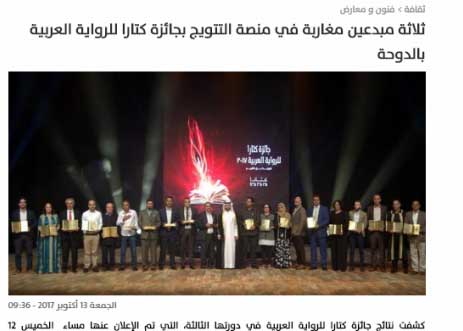 ثلاثة مبدعين مغاربة في منصة التتويج بجائزة كتارا للرواية العربية بالدوحة